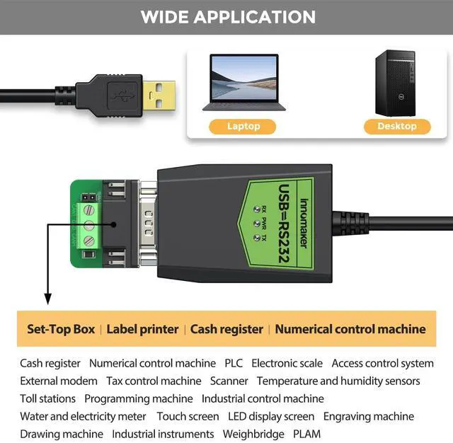 USB2RS232-C is a plug and play and USB A Male to RS232 male DB9 serial cable. Communication between your PC/SBC/Raspberry Pi and other devices stably though RS232 Bus connection. On-board industrial-grade FTDI FT230X, Baudrates can be set from 300 baud to 2 Mbaud. Support for 7 or 8 data bits, 1 or 2 stop bits and odd/even/mark/space/no parity mode. Support FTDIs royalty-free Virtual Com Port (VCP) and Direct (D2XX) drivers eliminate the requirement for USB driver development in most cases.