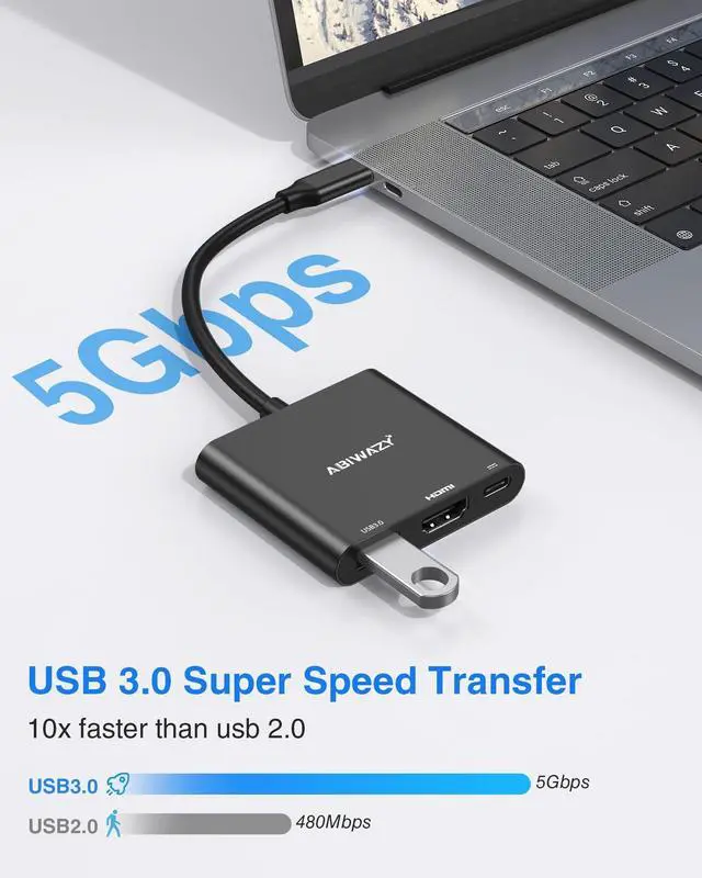 Wide compatibility: ABIWAZY usb c to hdmi and usb is compatible with laptop with fully functional usb c ports (supports video output, data
