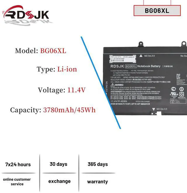 Part Numbers: BG06XL, BG06045XL, 804175-181, 804175-1B1, 804175-1C1, 805096-001, 805096-005, HSTNN-IB6Z, BGO6XL, BG06, BGO6 ^^ 100% New from Manufacturer. Up to 500 recharge cycles over the life of the battery. The actual operation time will depend on how much electricity is required by the device and how you use it ^^ For first use, please discharge the battery to 5%(not to 0%) and then charge to 95%, and cycle 3-4 times.