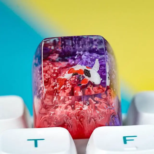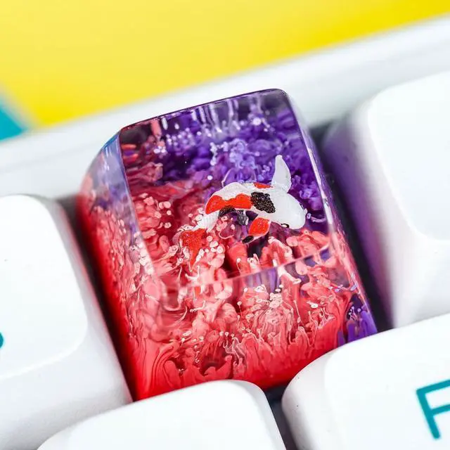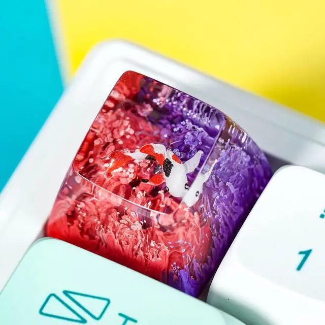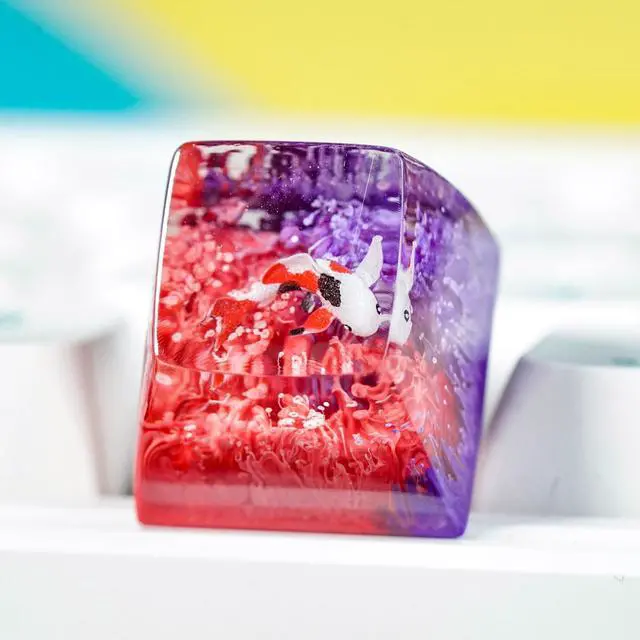 Kohaku Koi Artisan Keycap Orange and Purple Ocean Coral Reef R1 SA Profile Custom Keycaps 1U ESC Handmade Gaming Resin Key Cap Cherry MX Switch Compatible Mechanical Keyboard Koi Lover Gift