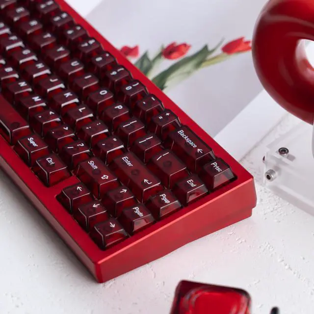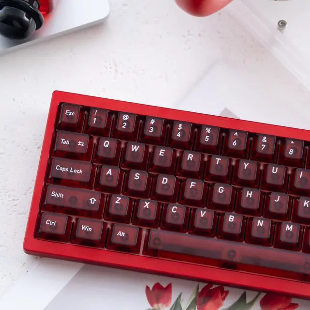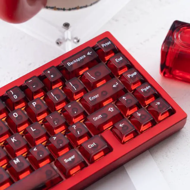 Crystal Design: Made of red crystal clear material with a frosted translucent finish, these keycaps emit a soft, clean glow. The understated design complements any setup, blending seamlessly with both modern workspaces and vibrant gaming stations ^^ Classic Cherry