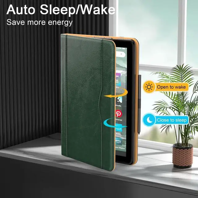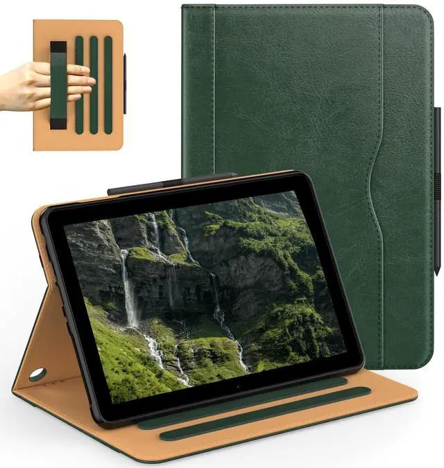 [Premium Material]Made of premium PU leather exterior and microfiber interior, makes the cover look more classic. Full coverage book case protecting your tablet from scratches, dirt and grime and providing you an easier lifestyle with our quality leather case.