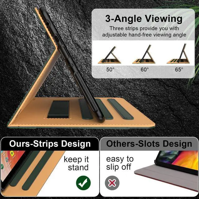 [Multi-Angle Design & Hand Strap] - Strips design holds the case stand in 3-angle. Plus inside hand strap, can choose the right mode based on your needs that allows easy access to your favorite shows, movies, and games when you sit, lie down, or stand.