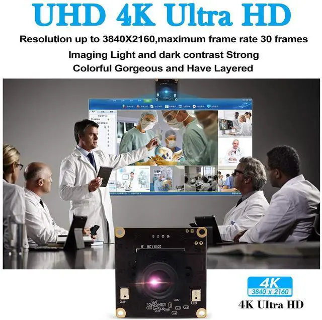 4K with fluid 30fps, which delivers crisper image and clearer videos for professional conference, business interview, online teaching, recording and gaming. ^^ Quick Plug&Play- This usb camera module is easy to use, only plug camera into computer USB port and running the software can make video display and recording work. No drive installation is required. Support USB 2.0 OTG, high speed usb 2.0 data transmission, occupy less bandwidth, greatly improved the working efficiency. Default 1 meters long cable. MJPEG/YUY2 compression format. ^^ Wide Application- 4K UHD Webcam with super small outline and thin profile for embedded applications, Compact camera for all kinds of machine vision, Wide application for 3D scanner, VR camera, electronic microscope, medical machine, automated image acquisition system.