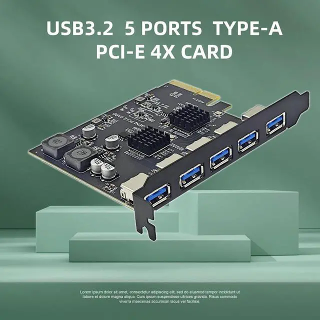 5 Ports: USB 3.2 PCI Express expansion card has 5 TYPE A ports and supports 10Gbps transfer rate. Ideal for handling large files and high resolution media. 3.