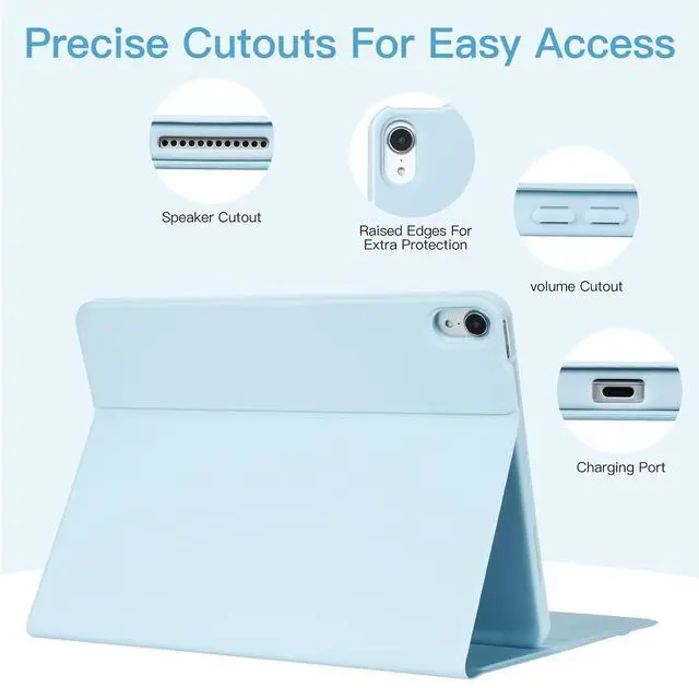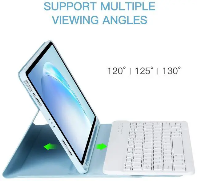 Description: *Sturdy and attractive design. The for iPad fits snugly into the leather case and provide sufficient protections for daily use. *Comes with a slot for holding your for Apple pencil that lets you effortlessly reach for your pen whenever you want to use it. ( for Apple Pencil is NOT included). *A protective cover and real, quiet keyboard support 3 use modes - Typing, Viewing, Reading - giving you amazing versatility. It allows you to prop the for iPad up for watching videos. *All your for ipad needs in one tool. Full protective case and a light up keyboard, easy to fold and carry. Now you can enjoy laptop-like typing anywhere you take your for iPad. *The for iPad Air 10.9 Case Support for apple pencil attach and wireless charging without taking off the case. * Bluetooth keyboard is responsive and held into the case by a magnet. *Perfect access to all ports/buttons and camera.