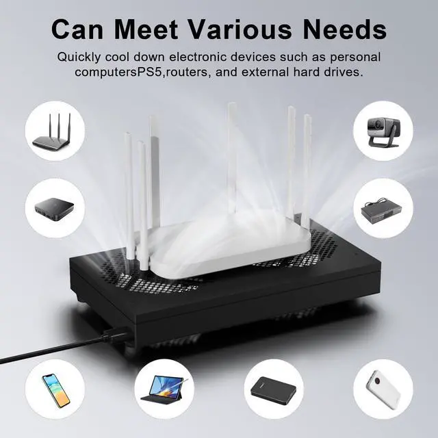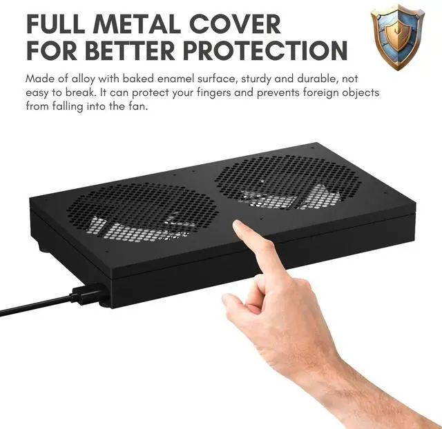 1. 2-in-1 USB computer fan features dual fans that work simultaneously, providing optimal cooling for electronic devices. ^^ 2. Full metal cover aluminum alloy mask, sturdy and durable, not easy to break. It can protect your fingers and prevents foreign objects from falling into the fan, making it perfect for use in home or office environments. ^^ 3. Compact and versatile design of the electronics cooling fan makes it suitable for use with a variety of electronic devices, including computers, PS5s, routers, and more. ^^ 4.