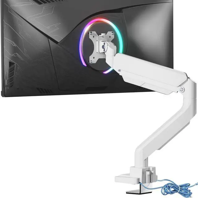 Fully Adjustable: The high-grade steel gas spring arm can be extended and retracted to your ergonomic position. Monitor head can tilt +45/-45, swivel +90/-90, and rotate +180/-180 ^^