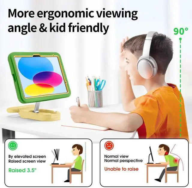 Screen Viewing Angle: iPad's elevated viewing angle is closer to your natural line of sight and more ergonomically designed to keep you in a comfortable position even when using it for long periods of time.