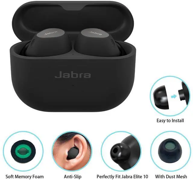 SEICHYGO replacement ear tips earbuds cap earphone tips silicone earpads set Compatible with Jabra Elite 10 True Wireless Earbuds, black, 3 pairs