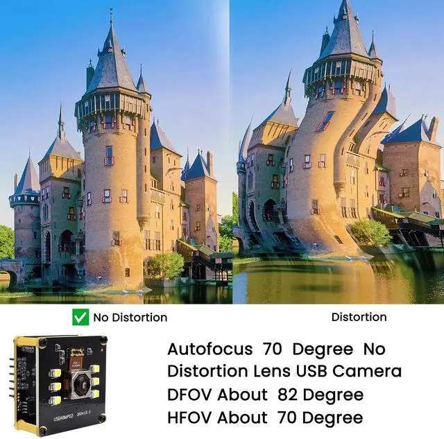 Degree Autofocus No Distortion Lens: Fast autofocus usb camera with none-distortion lens, wider