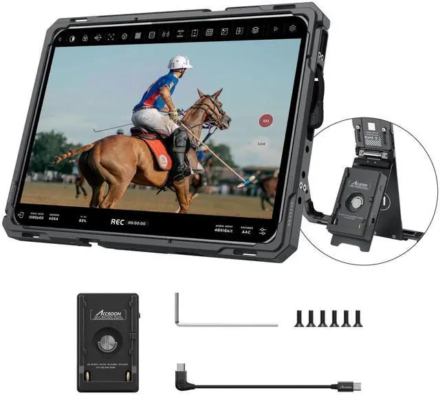 Pro 13 inch (M4/M5(Note: iPad Pro 11 inch M4/5 needs to be matched with a rubber cage, and it is not included), iPad Air 6 13 inch (M2), iPad Air 7 13 inch (M3), providing a versatile solution for your device ^^ Turn your iPad into larger monitor: A compatible iPad Pro with Accsoon SEE App connect to the Accsoon SeeMo/SeeMo 4K/SeeMo Pro/CineView Master 4K/CineView 2 SDI/CineView Quad/CineView HE/CineView SE/CineView Nano. And Accsoon SEE App provides professional-grade monitoring tools such as RGB, Audio Level, Histogram, Waveform, Focus Peaking, LUTs, and more. It also supports RTMP live streaming, allowing direct broadcasting to platforms like YouTube, Facebook, and Twitch ^^ Adjustable Protective iPad