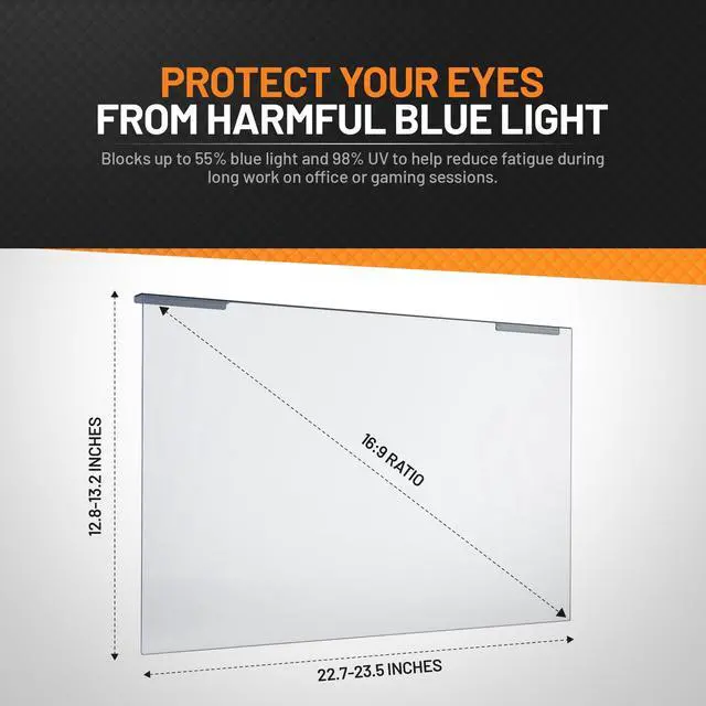 Monitors: Compatible with 2627 inch (612x384 mm) monitors including widescreen LED and LCD models this blue light filter panel fits most desktop PC screens used in offices homes or study spaces. ^^