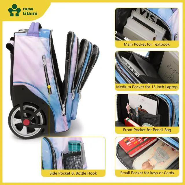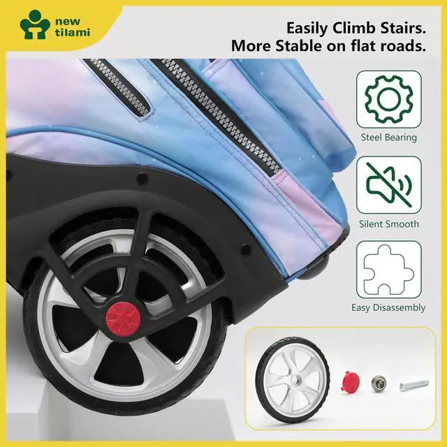 Wheels Climbing Stairs: With the Two adjustable ABS material handle, the New Tilami rolling backpack allows children of all ages to navigate smoothly as well as ascend stairs effortlesslymaking it an ideal choice for any occasion. ^^
