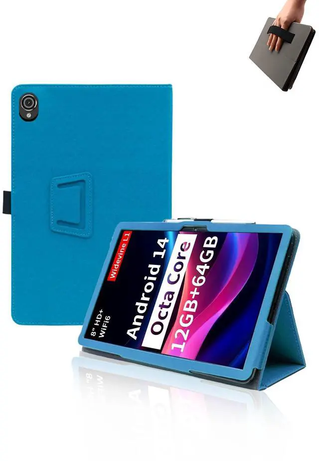 Case for Topsand M8 Android 14 Tablet 8 inch Tablets,UYRUREL Leather Slim Folding Stand Cover with Hand Strap Magnet for Men Women Full Protection,SkyBlue.