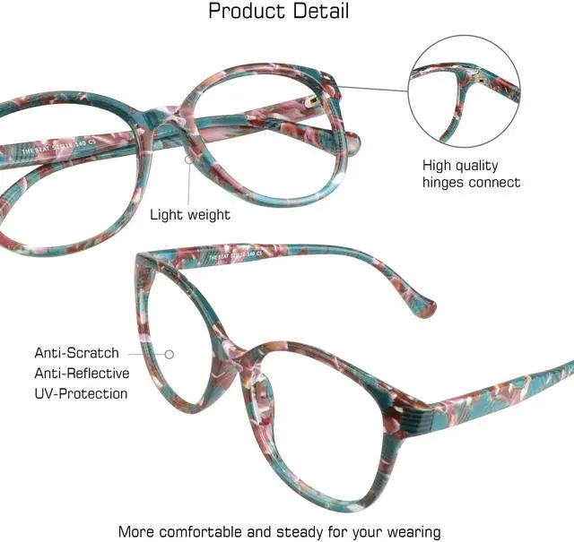 Material: Frame TR90, Lens Resin. Oval shaped frames with a floral pattern, crafted from lightweight yet durable TR90 ^^