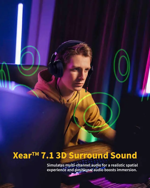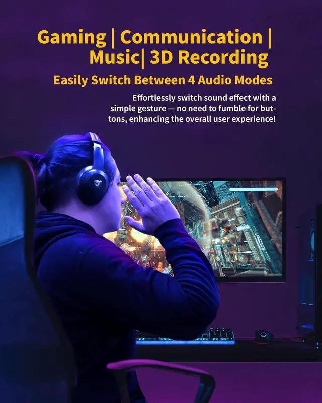 Control with AI GesturesEquipped with mmWave AI technology, this headset enables seamless mode switching through simple hand gesturesjust pat or wave. No buttons, no distractionsjust total immersion ^^ Immersive 7.1 Surround and Sonic EnhancementXear 7.1 Surround Sound and compressed audio restoration technology deliver crystal-clear, spatial audio. Whether gaming, listening to music, or watching a movie, enjoy rich, lifelike sound ^^ Studio-Grade Microphone with Noise CancellationFeatures dual MEMS microphones with advanced ENC HD technology for clear, multidimensional sound capture. Ideal for livestreaming, meetings, or team play with zero background noise interference.