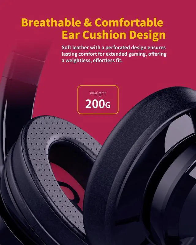 ^^ Lightweight Comfort for Long SessionsDesigned with a featherlight 200g build, this headset offers exceptional comfort even during extended wear. Perfect for long gaming nights, virtual meetings, or music marathons without fatigue ^^ Wide Compatibility and Visual CustomizationCompatible with PC, Mac, smartphones, tablets, Nintendo Switch, and PlayStation. Includes a USB-C cable and USB-A adapter, plus dynamic LED lighting to visually indicate different modes