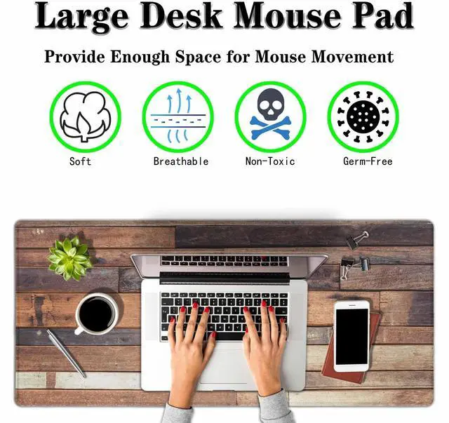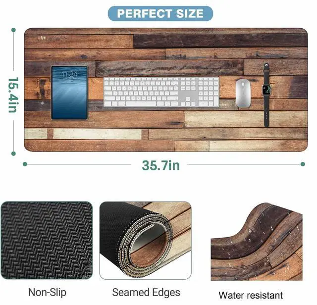 The mouse pad for desk size is 900 x 400 x 3mm ( 35.4 x 15.7 x 0.11 inch). About the package is includ one piece mouse pad, which lagre big extended size mousepadthe material is Chamfered fabric and Rubber Base. The soft and dense non-skid nature rubber base keeps the mat firmly in place, it can effectively prevent the mouse and keyboardfrom sliding and moving. suit to all types of desks including wood, glass, leather, metal, marble desk and so on. desk pad is flexibleenough to be rolled up carry, if you want to use when travel.