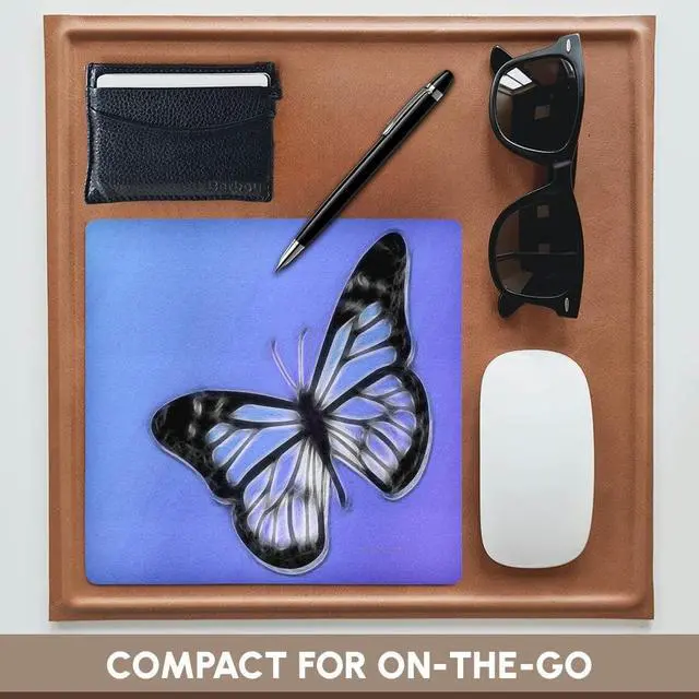Monarch Butterfly A Mouse Pad is 8" x 8" x. 25" and is made of heavy-duty recycled rubber. Matte finish image will not fade or peel. Machine washable using a mild detergent and air dry.