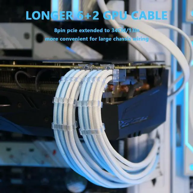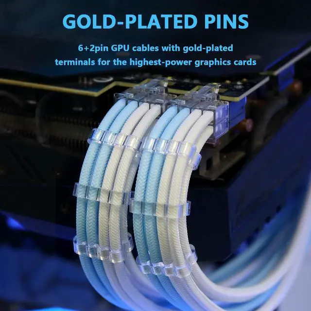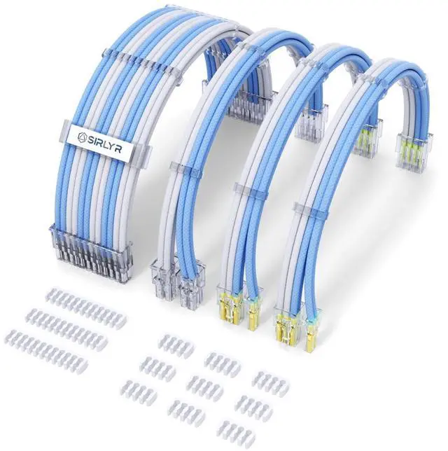 Upgrade your PC's aesthetics and functionality with the Sirlyr PSU Cable Extension Kit. With a unique pre-bent design and pre-installed cable combs, we make cable management easy and visually appealing. Our 8-pin PCIE cables come gold-plated, offering stable power supply and protecting your hardware. The unique colorful design fits well with various build, giving it a cleaner, more professional look. Trust Sirlyr for your PC cable extensions and enjoy quality assurance with our free one-year replacement service for any quality issues. Give your PC a visual and functional boost with the Sirlyr PSU Cable Extension Kit today!