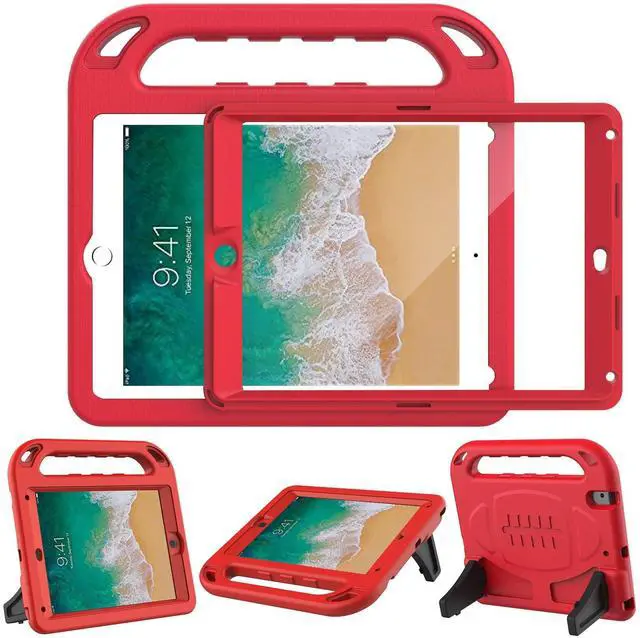 FIT MODEL - iPad 9.7 2018/2017 Case, fit to iPad 6th Generation 2018 Model A1893 A1954, iPad 5th Generation 2017 Model A1822 A1823, iPad Air 2 case Model A1566 A1567, iPad Air (1st generation) Model A1474 A1475 A1476 ^^ BUILT IN SCREEN PROTECTOR - 9.7 -inch iPad 6th/5th generation case with built-in screen protector, crystal-clear, full-body protection, keeps your iPad 9.7 from accidental bumps, drops and scratches efficiently ^^ SHOCK-PROOF DROP-PROTECTION - iPad 9.7 case for kids, made of shock-absorbing, impact-resistant EVA (Ethylene Vinyl Acetate) foam material, light weight yet durable, absolutely kid-friendly, provides decent protection for your iPad 6th/5th gen and iPad air 2 9.7 ^^ PRECISE CUTOUTS - iPad air 2 case for kids, has exact opening holes to all features (cameras, speakers, volume buttons, charging port, headphone jack, home button, sensors), great accessibility ^^ WONDERFUL CHOICE - iPad case 6th/5th generation comes in a series of bright and enjoyable colors, designed with convenient handle and kickstand, easy to grip/hold, ideal gift choice for family and friends