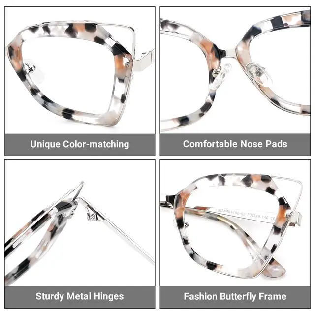Material]: Made of high-quality metal and acetate material, this butterfly eyeglasses frame is lightweight and durable, reduce the burden on your nose bridge when wearing it.