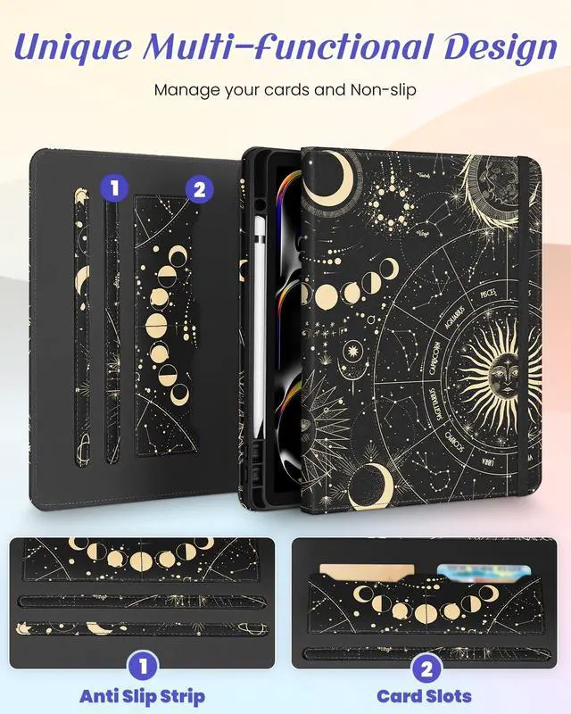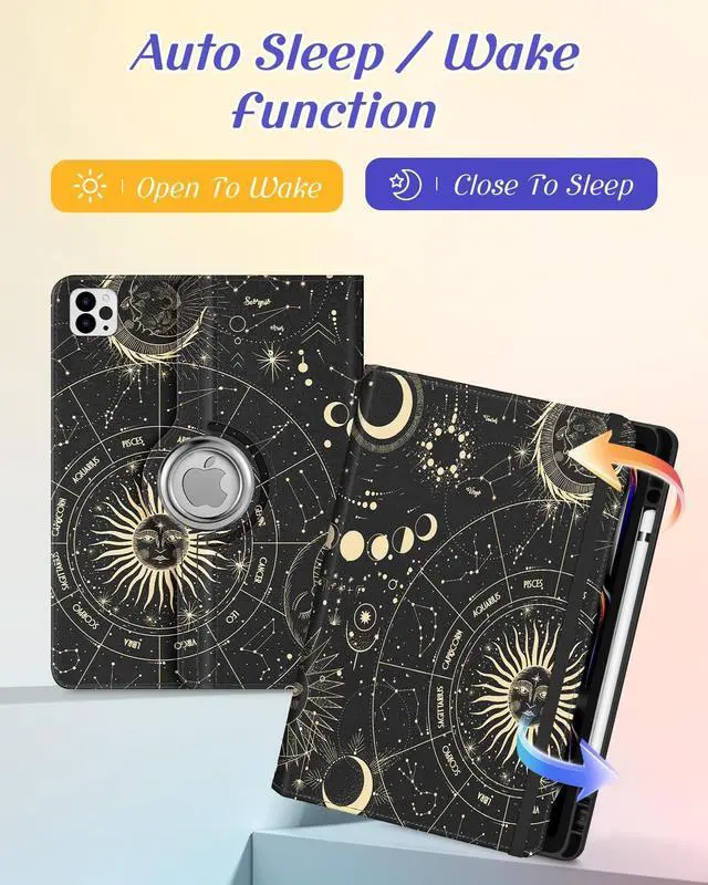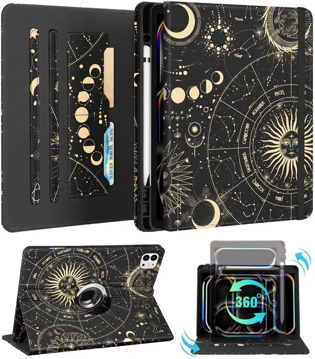 Kidcube for iPad Pro 13 Inch Case M4 2024 - Women Girls Cute Rotating Stand Folio Cover with Pencil Holder & Card Slot Girly Sun Moon Stars Design for iPad Pro 13 Inch Case 2024 (A2925 A2926 A3007)