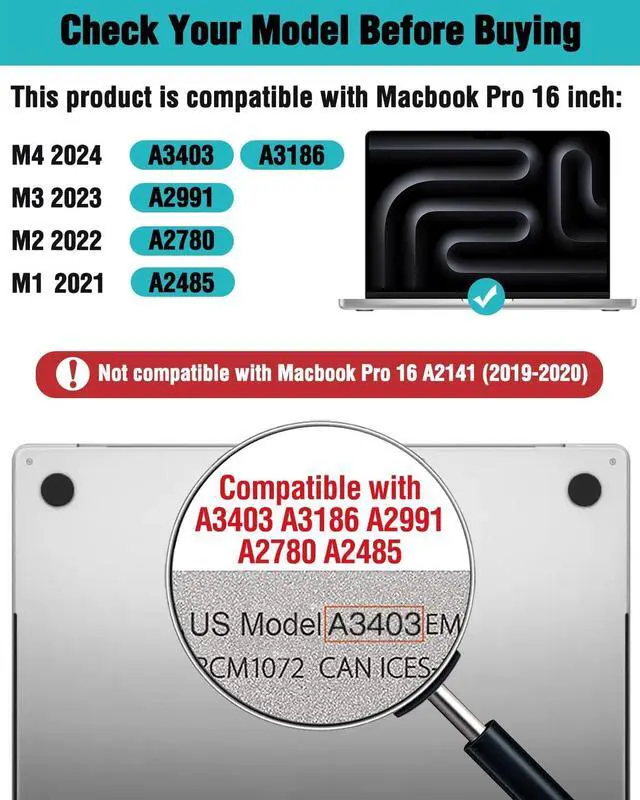 Compatible Model This macbook screen protector is compatible with MacBook Pro 16 inch year 2021, 2022, 2023, 2024, M1, M2, M3, M4 Pro/Max.