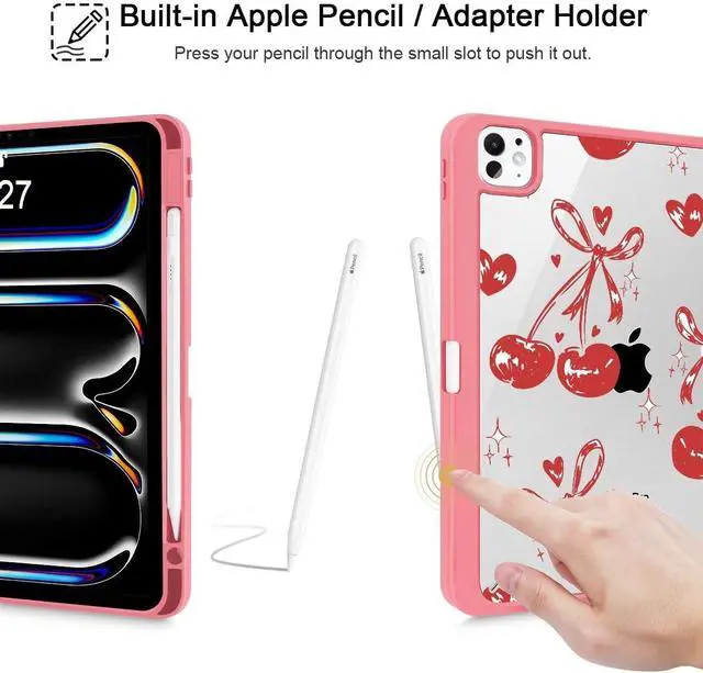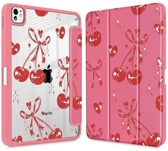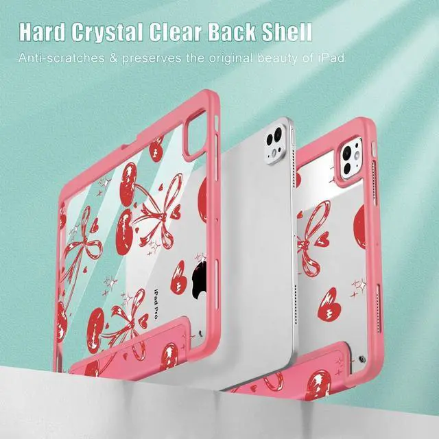 Mektron Case for M5/ M4 iPad Pro 11 inch 2025/2024 with Pencil Holder, Compatible Models: A3357/A3358/A3359/A2836/A2837/A3006, Shockproof Cover Clear Shell, Cherries Bows C388