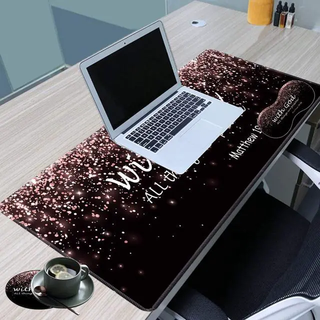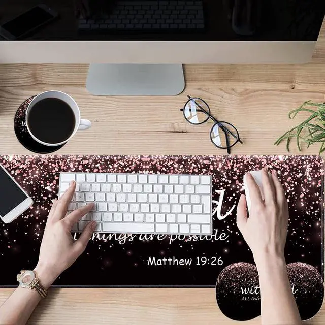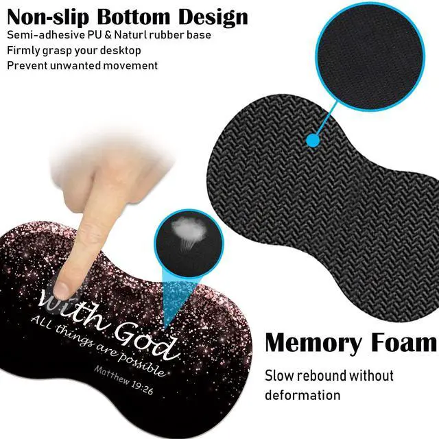 The soft memory foam pad filler will support your wrist, relieve pain and allow you to work effectively without ever getting tired. ^^ Non-slip Rubber baseThe mouse pad kit is made of thick textured rubber with a solid and stable ground grip, which effectively prevents the mouse and keyboard from sliding and moving. ^^ Easy maintenanceOur mouse pad dust and sweat proof, easy to clean. Liquid stains can be cleaned with water for continuous use. Our desk mat is big enough to make the mouse smooth.