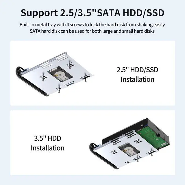 With the Separate Base, the hard drive enclosure can stand on the desktop, increased the use area of the desktop. enjoy the fun of DIY screw installation, fully enclosed hard drive enclosure, no need to worry about hard drive exposure and damage the file.