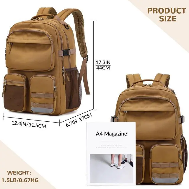 [Durable & Lightweight] - The big backpack is made of water resistant 900D polyester fabric, it is durable and lightweigt, and the weight is only 1.56 lb. ^^ [Large Capacity] -