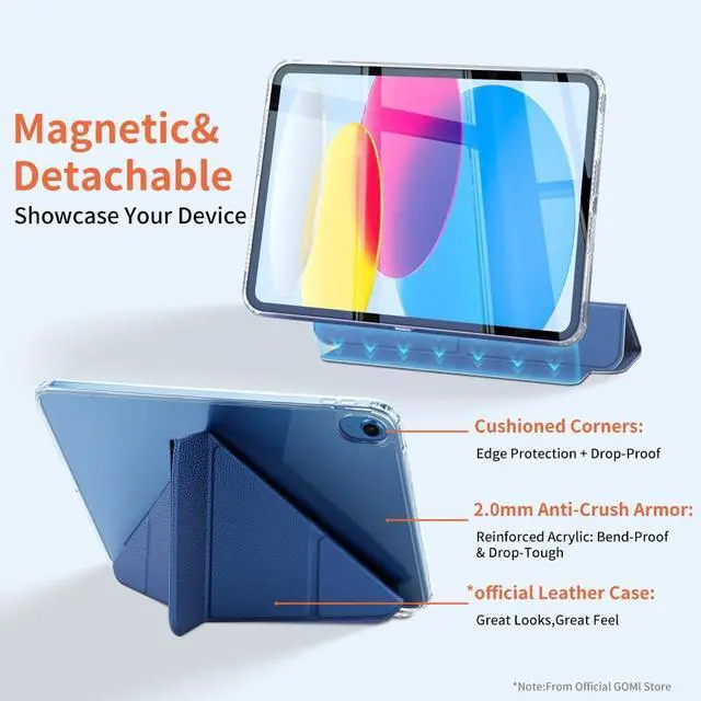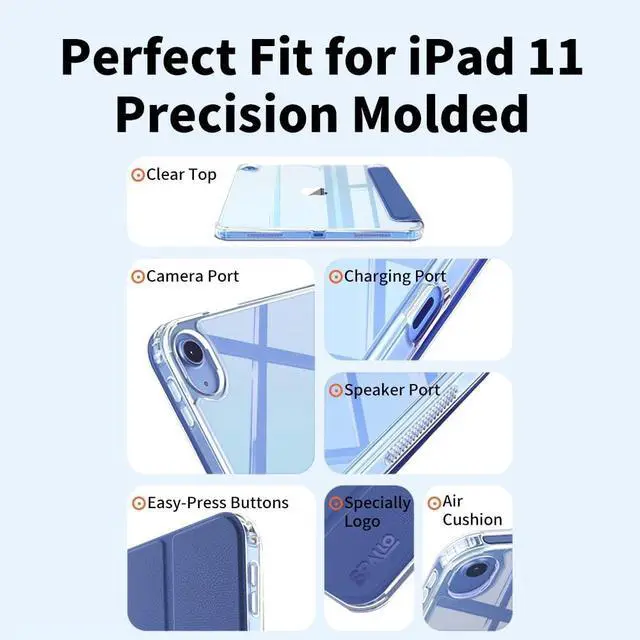 (Models: A2757/A2777/A2696). Not compatible with other iPad models; check your iPad's back for the model number "AXXXX" to confirm. ^^ Detachable Magnetic Cover Built-in powerful magnets create a secure lock for your iPad 11 A16 case, enabling instant attachment/removal and a steady stand. ^^ 5 Standing Angles This iPad A16 cover folds two ways, offering five angles for Zoom calls, drawing, or browsing. The triangle structure stabilizes your iPad case in portrait/landscape. ^^ Upgraded Premium Material Skin-friendly polyurethane leather resists dust/scratches on your iPad 16A case. At 8.6 oz, this iPad cover 11th generation is slim and portable. ^^ Upgraded Premium Material The skin-friendly polyurethane leather is dust and scratch-resistant and adds a touch of style. Weighing only 8.6 oz, this iPad (A16) 11th/10th Gen case is slim and easy to carry.