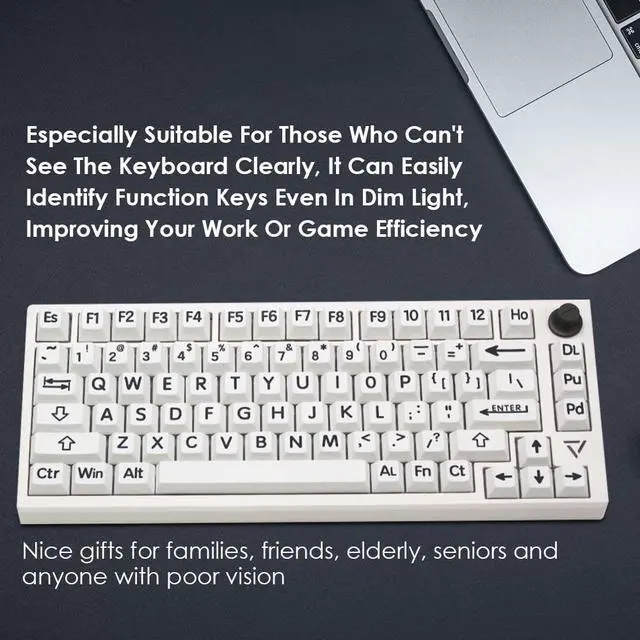 MULTIFUNCTIONAL: They are not only large print keycaps to identify the function keys a breeze even in dim light, especially for those people who have trouble seeing keyboard, improve your working or gaming efficiency, no worry about letter missing or being worn, fully enjoy a quieter and quicker typing experience, but extra decorations to replace your original keycaps, dress up your mechanical keyboard in a special way to look simple but unique, add a burst of personality to your office desk ^^