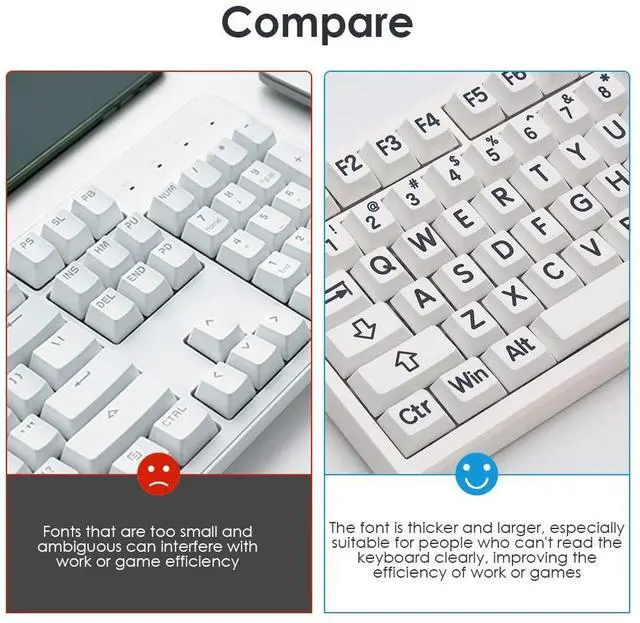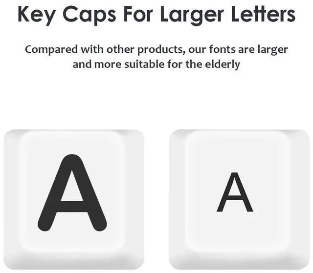 WIDELY APPLICATION: These large print keycap replacements are ideal for most mechanical keyboard with MX axes, NOT for membrane and notebook keyboard. Widely used for study room, school, library, company, office, internet bar and other special needs departments. Nice gifts for families, friends, elderly, seniors and anyone with poor vision ^^