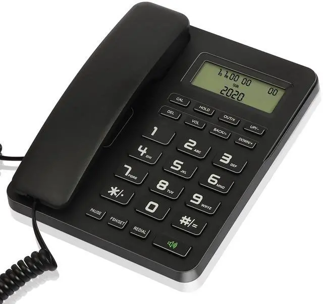 Awishwell Corded Desktop TelephoneWired Landline Phone for Home, Office, or Hotel with Adjustable Volume, 3-Level Screen Contrast, Caller ID, and Built-in Calculator-Black