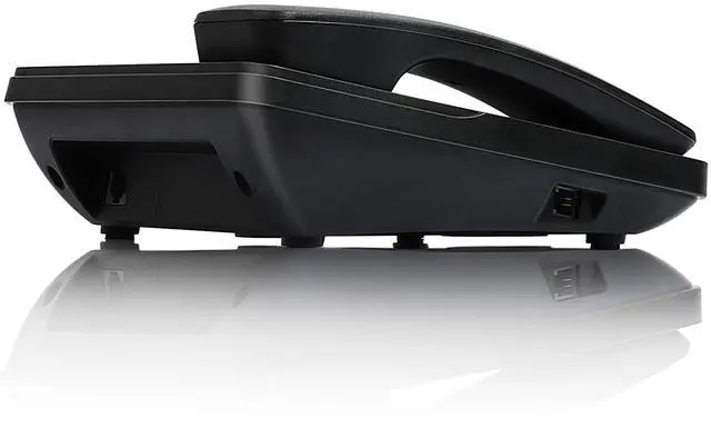 This corded phone supports both DTMF and FSK systems and features a blue backlit display that clearly shows up to 16 digits. It can store the last 43 received calls (up to 10 digits each) and the last 12 dialed calls (up to 12 digits each), making call management simple and convenient