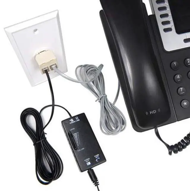 VOLUME CONTROL Adjust the volume as you pleased with the in-line volume control. ^^ EASY TO USE Simple and easy to use device that connects quickly between your handset and telephone providing a clear audio recording. ^^ UNIVERSAL CONNECTION Connect the it to your voice recorder or digital recorder using the 3.5 mm microphone input plug. ^^ LONG CABLE 7 Foot RJ11 Phone cable and 7 Foot 3.5 mm male to male audio cable gives you the flexibility to place the device In a place where you do not need to move everything around. ^^ COMPATIBILITY Compatible with most recording devices PC computer sound cards, all digital phone recorders, analog recorders with a 3.5 mm stereo or mono microphone or telephone jack input