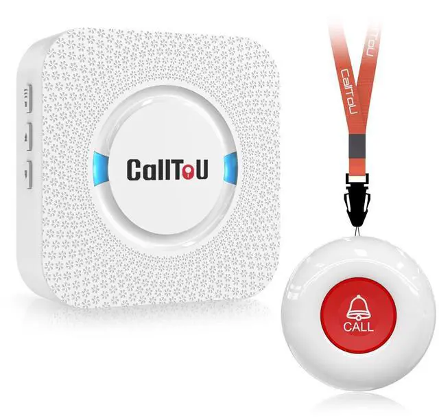 [ Wireless Guard ] 1 Receiver 1 Call Button. Allow caregivers and residents to be free while ensuring that help is still available at the touch of a button, ideal for elderly, seniors, patients, disabled ^^ [ Easy to Carry ] The receiver can be moved with the caregiver and the open area working range is 500+ ft, you can take it to the bedroom, kitchen or living area (receiver requires plugging into an outlet). The call button can also be hung around the neck of the person with a neck strap who needs help like a pendant or secured with a bracket or double sticker ^^ [ Smart Ringtones ] The receiver of caregiver pager has 55 ringing tones to choose from and 5 level adjustable volume from 0db to 110db.