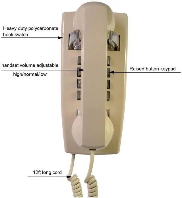 Functions: make calls; answer calls; incoming call ringer indicator3. Ringer on/off adjustable; 4. Handset volume adjustable5. Desk/Wall mounted Phone6. Landline Powered ( battery or AC power free ) 7. Poly Carbonate Hook Switch for Durability8. Works on any analog phone line (PSTN, VOIP) that is FSK or DTMF compatiblePacking