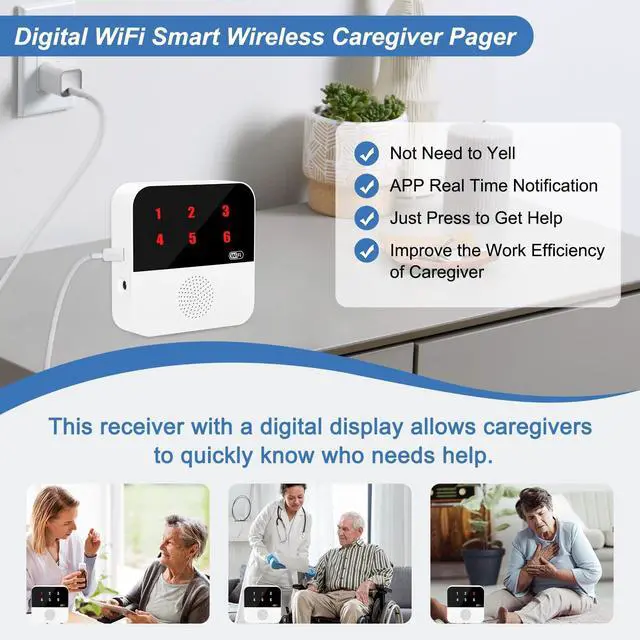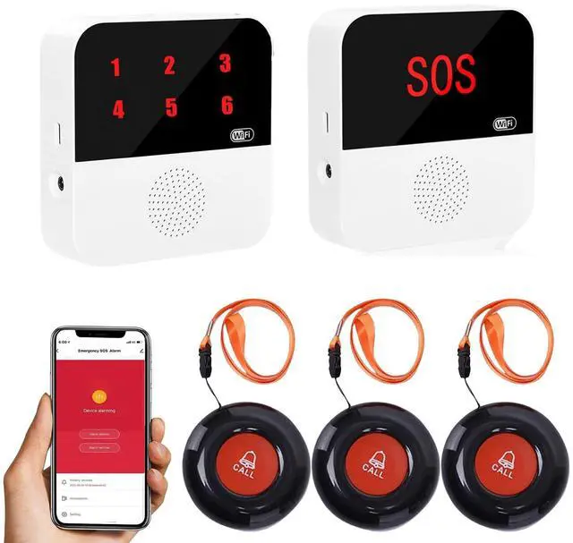 SanJie Tuya Wireless Caregiver Pager- Taking Better Care for Your Loved One More Easy Life Alert Systems for Seniors No Monthly Fee The call system includes plug-in model receiver and wireless call button, there is no monthly fee for our mobile app notification, if you need SMS or phone call notification, you need to subscribe extra. Fall Alert Devices for Elderly When an elderly, dementia, sick or disabled person at home accidentally falls, or needs help, just press the button, family members or caregivers can provide timely help.