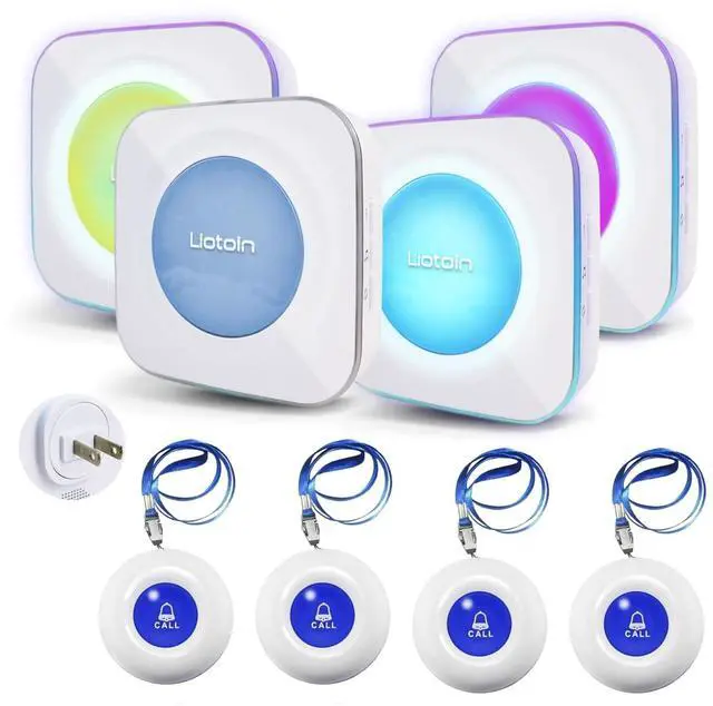 WIRELESS PAGER: The Caregiver Pager Alert System comes with 4 IP55 waterproof call buttons, 4 plug-in pager with LED flash (plug and play) to make caring for your loved ones easier.