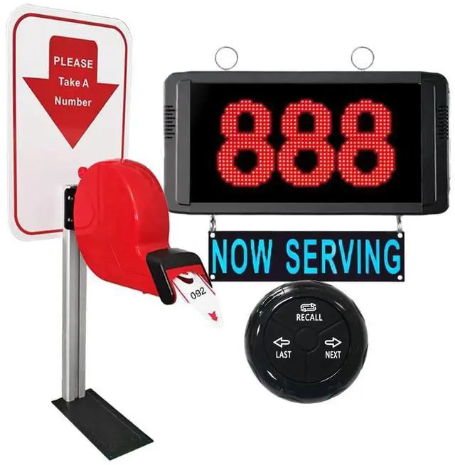 Package Includes: 1 x Host display1 x Call Button (Another one FREE for sparing) 1 x Power adaptor1 x Ticket Dispenser Stand1 x Remote Control1 x