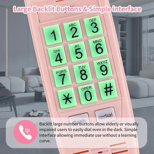 Enjoy flexible desktop placement too. Retro wall phone design complements any decor while adding charm to your home. A practical simple phone and stylish accent piece. ^^ [Big button phone for seniors] This corded phones for landline features large lighted button and a simplified interface, making it easy to dial even in the dark. The vintage/old landline phone enables individuals with alzheimer's to confidently use the phone independently, without the need to ask for help. It's not just a cute landline phone; it's a thoughtful gift for your loved ones. ^^ [Never miss a call] The home landline telephone's ringer volume has two levels: high and low. This land line telephones for home ringer cannot be turned off. Pink home phones landline loud 110dB ringer and flashing light ensure that even elderly with hearing impaired can accurately detect incoming calls. whether its a greeting from your children or an emergency call. ^^ [Clear sound quality] This house phone landline not only has a loud ringer but also delivers clear and loud voice quality during calls! The handset volume 80dB+ (Adjustable HI/LOW), specifically designed for seniors with hearing impaired. The handset features a high-fidelity sound chamber, ensuring clear sound with no noise, as if having a face-to-face conversation. Say goodbye to the frustration of 'not being able to hear clearly' and enjoy every call with ease and pleasure. ^^ [Lightweight & Durable telephone] This telephone landline phones for seniors is made from high-quality materials, built to stand the test of time. The handset is designed ergonomically with a curved shape that fits perfectly in your palm and around your ear, ensuring comfort even during long calls. Its a reliable and user-friendly high-quality choice, ready to accompany your family for many years.