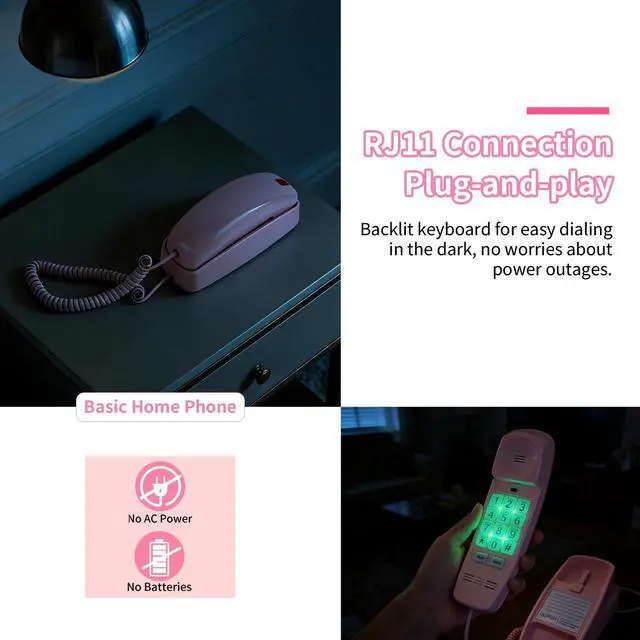 [Retro Corded Phone - No Power Required] This retro landline phones for home draws inspiration from the iconic Princess phone of the 80s. Featuring vibrant colors and a distinctive design, it effortlessly becomes a stylish accent piece for your home, blending seamlessly with any decor style. This landline phone require no power source or batteriesthey're plug-and-play. Powered by traditional wired lines, ensuring continued operation during power outages. ^^ [Space Saving Wall Mounted/Desk Phone] Break free from placement constraints with this landline phones for home! Supports wall-mounting for easy installation in any room, freeing up desk space.