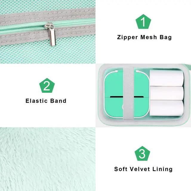 ^^ Simple and Practical Design The T02 label maker case inner mesh pocket storage space keeps the items well-organized, and can effectively store small label printer accessories. Built-in elastic band can fix label printer and prevent m02 printer from accidentally falling. ^^ Portable