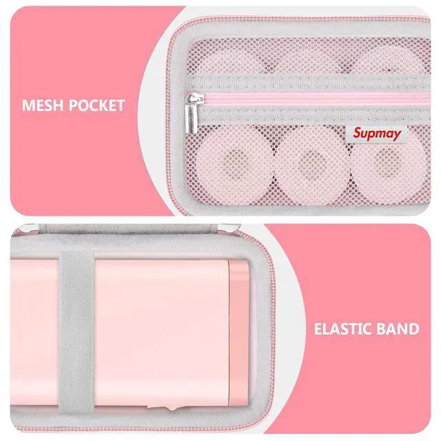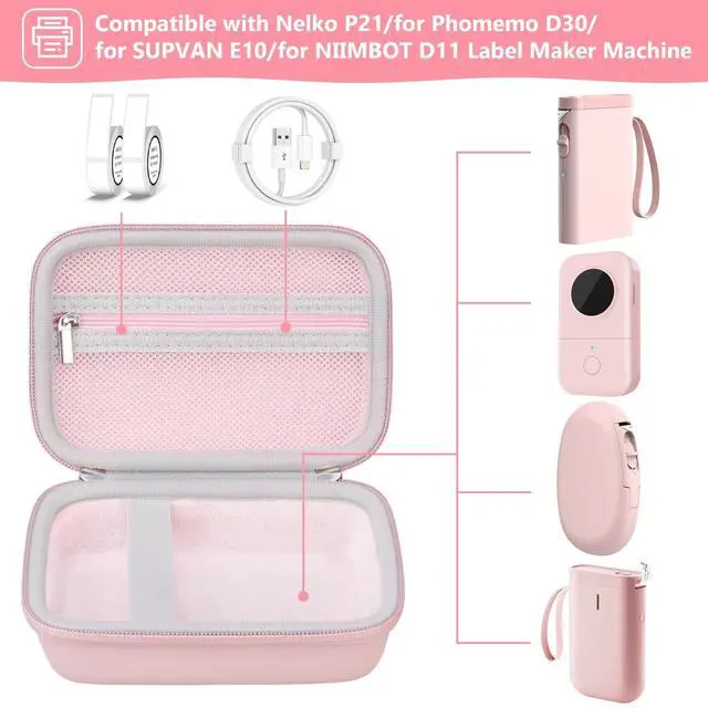 Supmay Hard Case Compatible with Nelko P21/for Phomemo D30/for SUPVAN E10/for NIIMBOT D11 Label Maker Machine, Portable Bluetooth Label Printer Storage Holder Bag with Mesh Pocket for Tapes, Pink