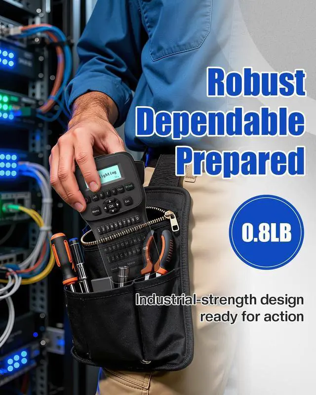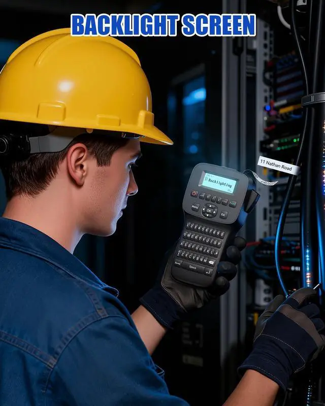 BUILT FOR DEMANDING ENVIRONMENTS: Engineered for toughness, this waterproof label maker features a backlit LCD for clear visibility in low-light conditions like warehouses or server rooms. Its rugged build makes it an ideal industrial label maker capable of withstanding challenging job sites. It produces durable, label maker waterproof labels that resist smudging and moisture, ensuring your identifications for wire label maker tasks and critical infrastructure remain legible and professional over time ^^