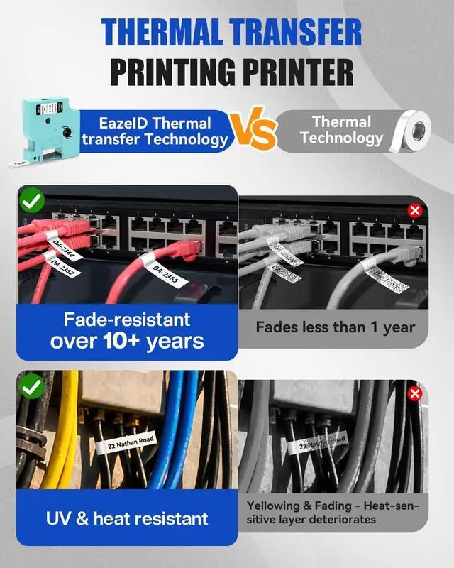 SPECIALIZED HEAT SHRINK LABELING: Go beyond basic labeling with specialized heat shrink functionality. This heat shrink label maker is ideal for professional wire and cable identification, creating durable, permanent labels that conform tightly to cables. The heat shrink label maker compatible with dymo label maker tape 18055 a18055 Rhino Heat Shrink Tube Labels, making it a strong alternative for industrial applications. This cable label maker is a must-have for electricians, engineers, and IT professionals